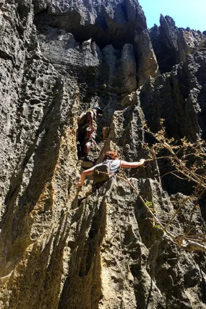 Nous vous conseillons de prendre des vêtements adaptables. Au pied des formations se trouvent des cavités profondes où le taux d’humidité est important, les plantes y sont abondantes et grimpent vers la lumière. A l’inverse, le haut des tsingy est très sec avec des températures assommantes.